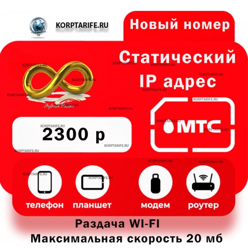 Безлимитный интернет для модема статический IP 2300.Все регионы.Red