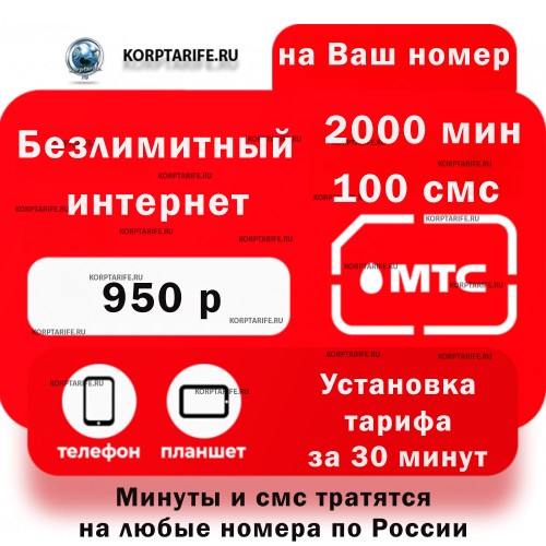 На Ваш номер.Абонентская 950.Все регионы.Red